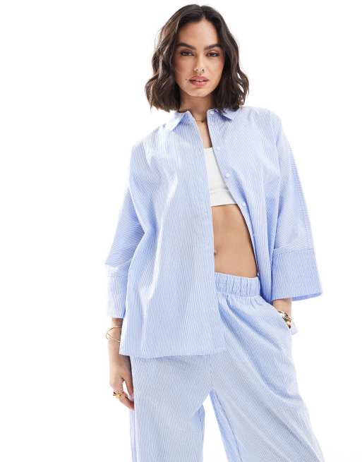 ONLY - Camicia blu a righe con maniche a 3/4 in coordinato