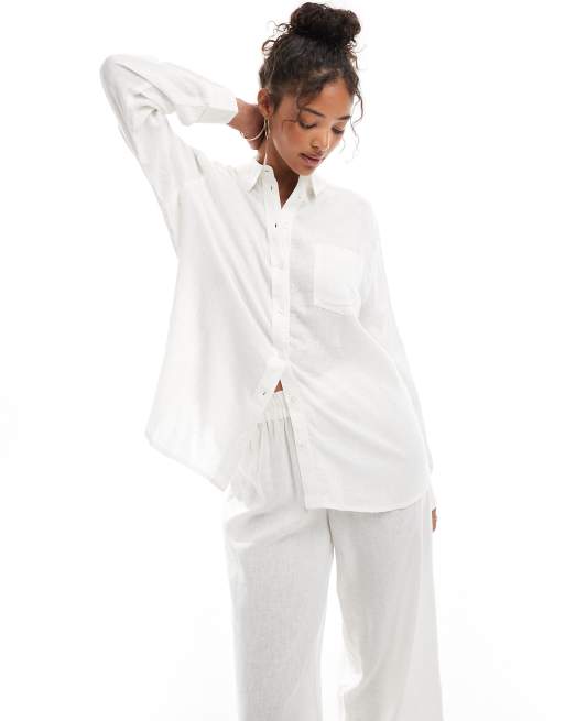 ONLY - Camicia oversize in misto lino bianco in coordinato