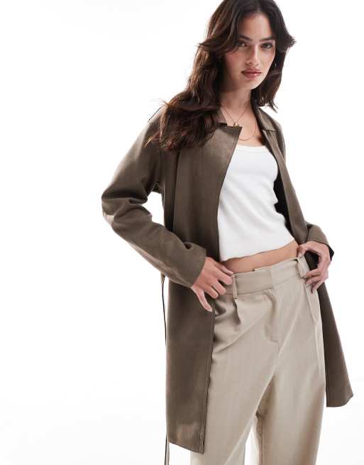 Only - Cappotto avvolgente con cintura marrone chiaro