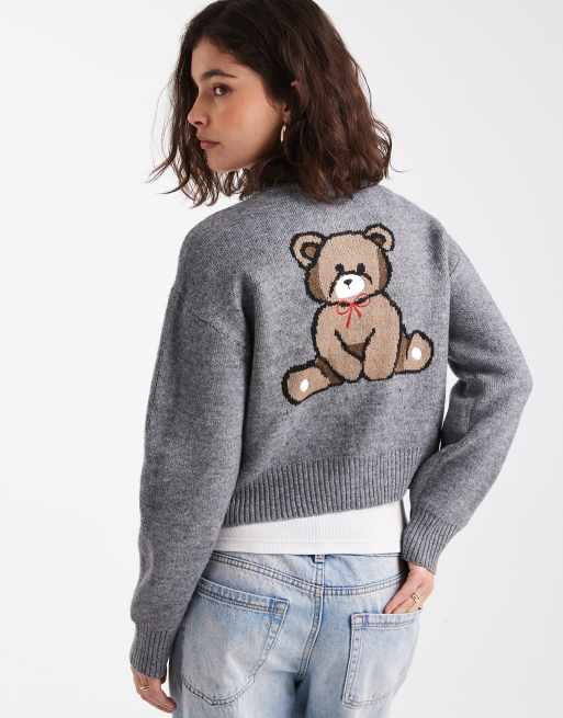 ONLY - Cardigan in maglia grigio con ricamo di orso