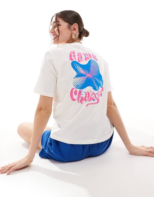ONLY - Game Changer - T-shirt bianca squadrata con stampa sul retro