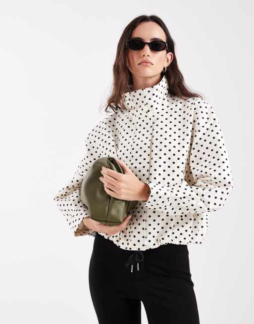 ONLY - Giacca corta bianca a pois con collo a imbuto