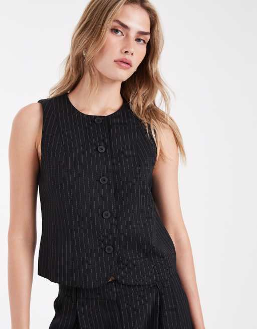 ONLY - Gilet accollato nero gessato in coordinato