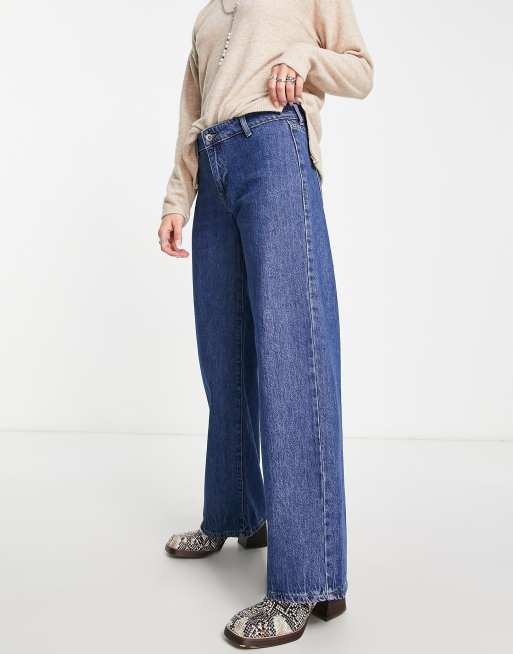 Only - Jeans a fondo ampio a vita bassa blu scuro