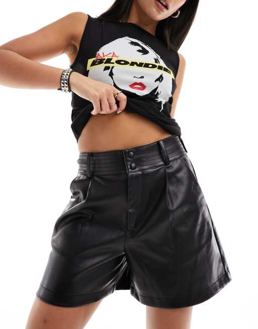 Only - Pantaloncini a vita alta in pelle sintetica nera