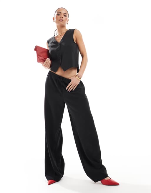 ONLY - Pantaloni sartoriali larghi neri in coordinato