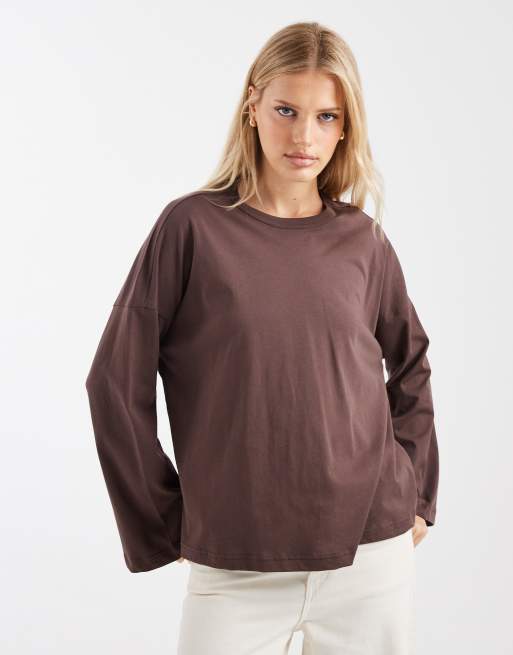 ONLY - T-shirt oversize a maniche lunghe marrone cioccolato