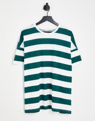 Only - T-shirt oversize verde e bianca a righe