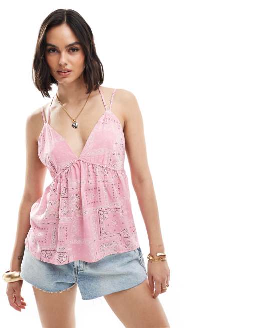 ONLY - Top rosa chiaro con fascette sottili e stampa stile bandana
