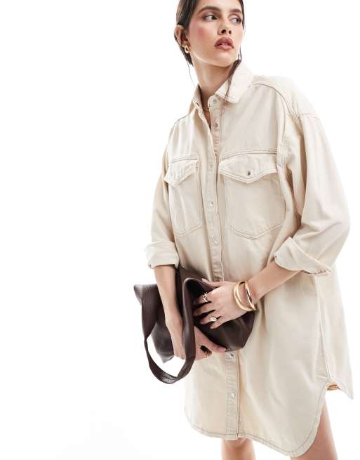 ONLY - Vestito camicia corto oversize in denim écru