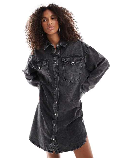 ONLY - Vestito camicia corto oversize in denim grigio lavaggio acido