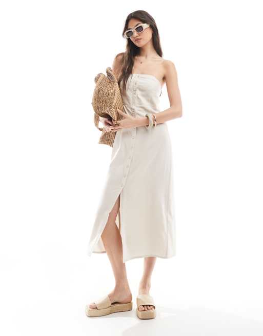 ONLY - Vestito midi a fascia in misto lino color pietra
