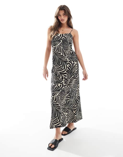 ONLY - Vestito sottoveste nero con spalline sottili e stampa di palme