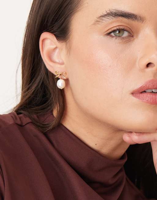 Orelia - Orecchini a fiocco in metallo placcati in oro 18 k con perla