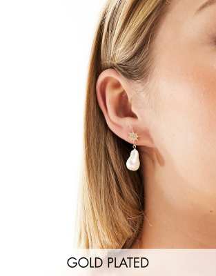 Orelia - Orecchini pendenti placcati oro con stella e perla appariscente