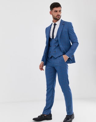 Original Penguin - Abito slim blu a quadri Principe di Galles