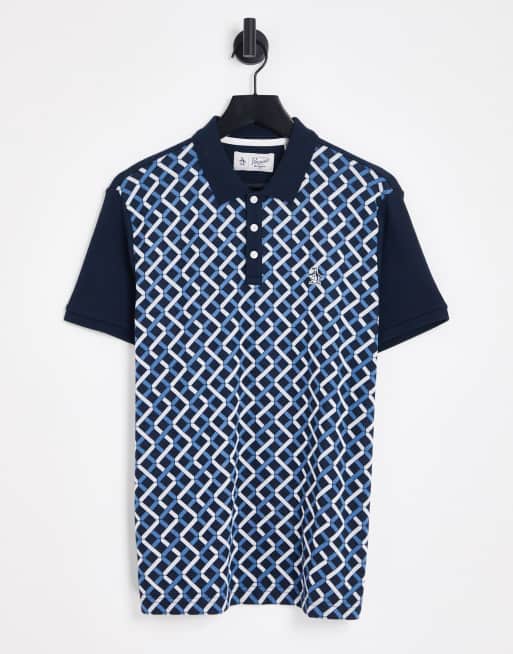 Original Penguin - Polo blu navy con stampa astratta