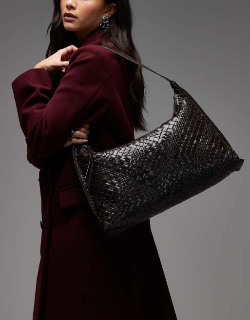 & Other Stories - Borsa da spalla grande marrone in vera pelle intrecciata arrotondata con finiture con frange