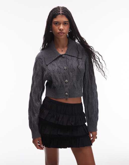 & Other Stories - Cardigan grigio in maglia a trecce con colletto e bottoni sul davanti