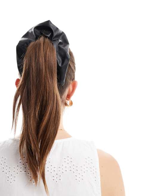 & Other Stories - Elastico per capelli squadrato oversize in pelle sintetica nero