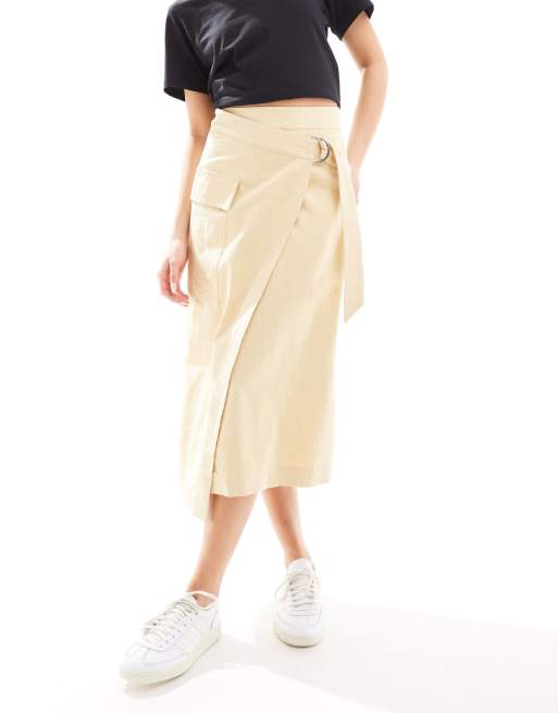 & Other Stories - Gonna midi a portafoglio asimmetrica con tasca tonalità naturale