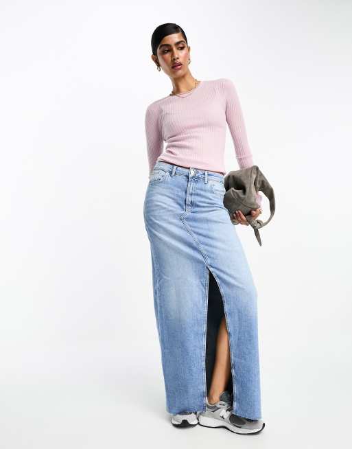 & Other Stories - Maglione aderente rosa polvere in lana merino a coste