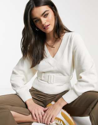 & Other Stories - Maglione bianco sporco con maniche a palloncino e cintura