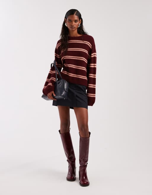 & Other Stories - Maglione in misto lana di alpaca morbidissimo bordeaux e rosa a righe con maniche ampie