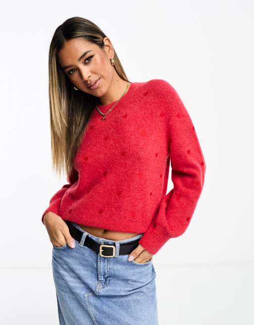 & Other Stories - Maglione rosso in misto lana e lana di alpaca con cuori ricamati