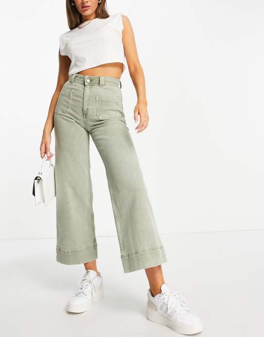 & Other Stories - Pantaloni in denim di cotone verde polvere con tasche sul davanti - LGREEN