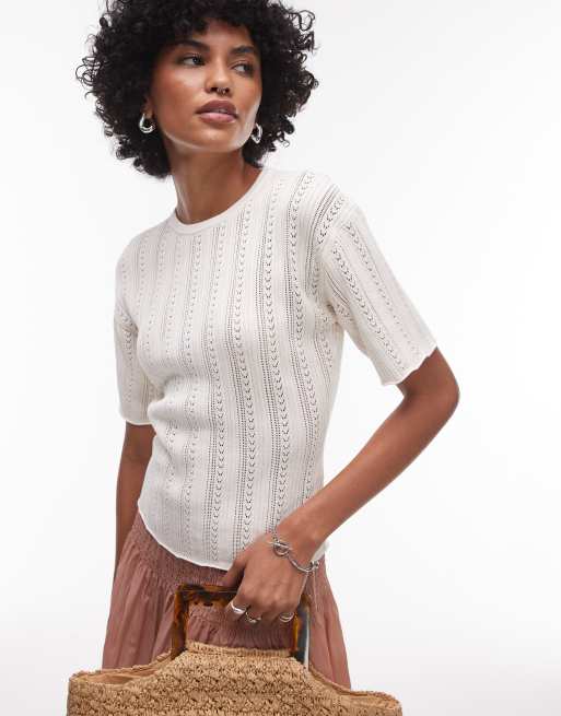 & Other Stories - T-shirt in maglia traforata ultra morbida bianca con bordi smerlati