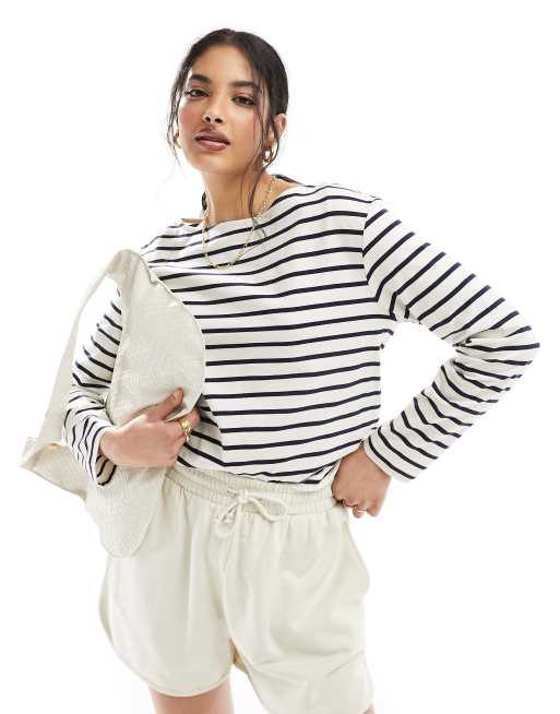 & Other Stories - Top a maniche lunghe a righe blu navy e crema