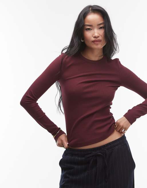 & Other Stories - Top a maniche lunghe bordeaux a coste