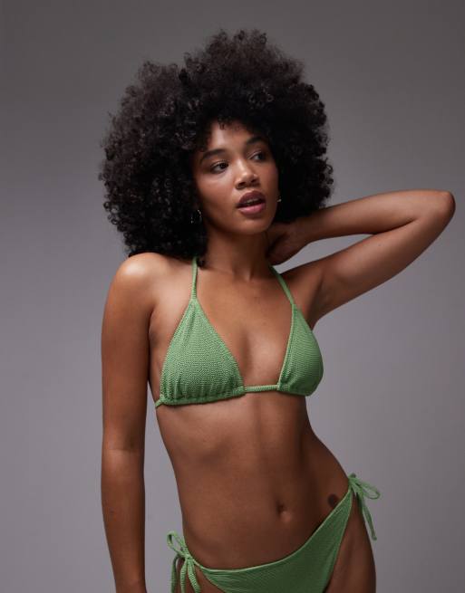& Other Stories - Top bikini a triangolo testurizzato in tessuto stropicciato verde con imbottitura rimovibile