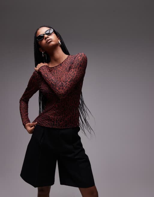 & Other Stories - Top in rete a maniche lunghe con stampa leopardata