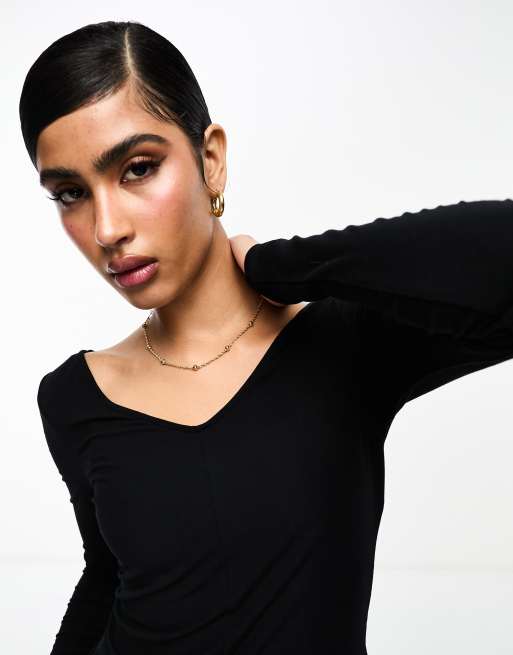 & Other Stories - Top nero a maniche lunghe con scollo a V