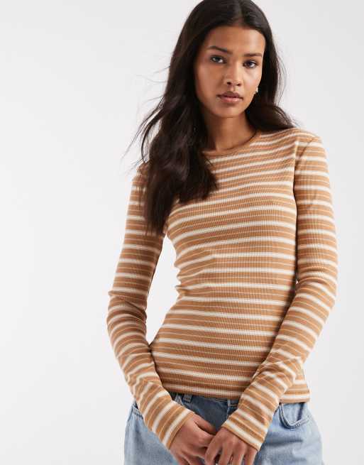 & Other Stories - Top slim a maniche lunghe super morbido a coste beige a righe
