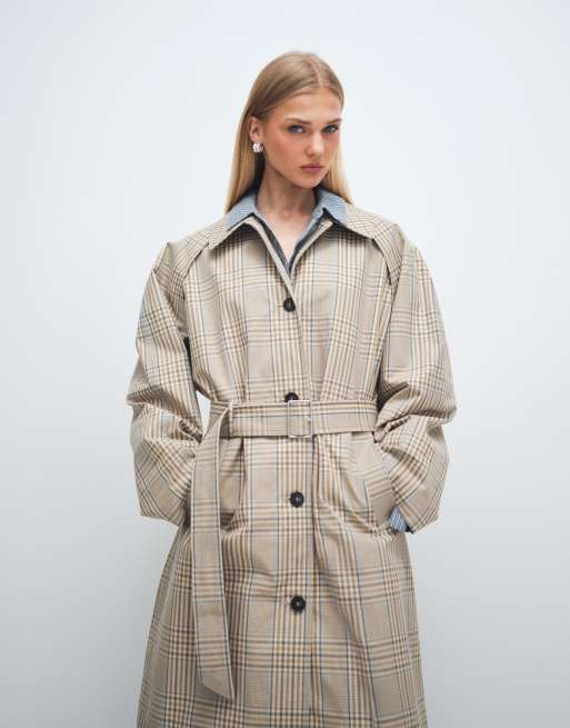 & Other Stories - Trench in puro cotone beige chiaro a quadri