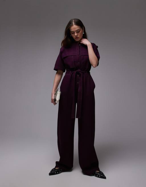 & Other Stories - Tuta jumpsuit elasticizzata a fondo ampio lilla scuro allacciata in vita multitasche