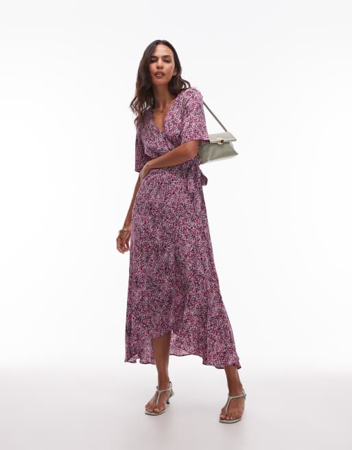 & Other Stories - Vestito a portafoglio al polpaccio rosa con stampa astratta