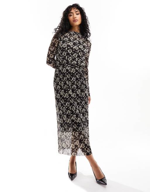 & Other Stories - Vestito al polpaccio a colonna in rete con motivo floreale jacquard