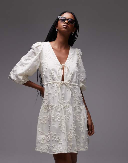 & Other Stories - Vestito corto giallo ricamato a balze con allacciatura sul davanti