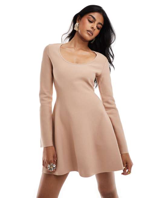 & Other Stories - Vestito corto in maglia beige chiaro con scollo rotondo e maniche a campana