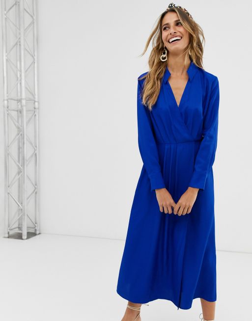 & Other Stories - Vestito midi a portafoglio blu acceso