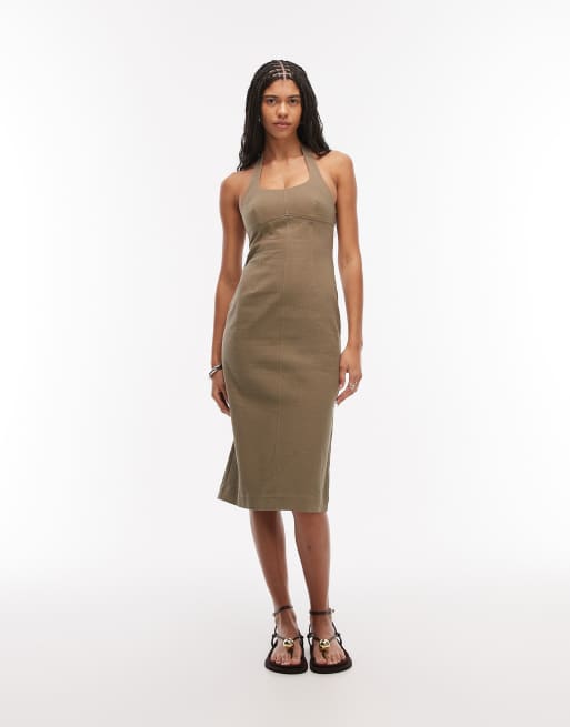 & Other Stories - Vestito midi allacciato al collo kaki scuro