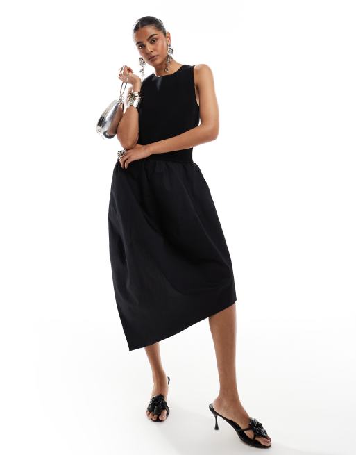 & Other Stories - Vestito midi senza maniche nero in tessuto a contrasto con orlo asimmetrico