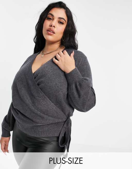 Outrageous Fortune Plus - Top avvolgente in maglia grigio