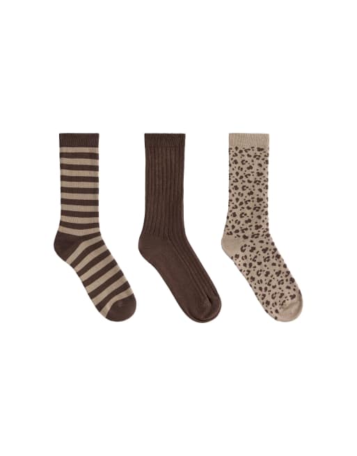 OYSHO - 3 paia di calzini classici in misto cotone marrone