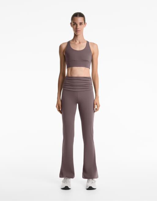 OYSHO - Comfortlux - Pantaloni a zampa e vita alta grigio-viola raccolti in vita