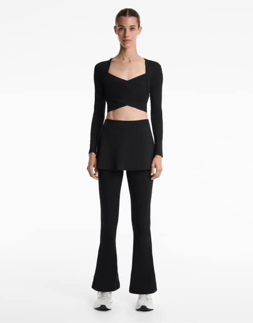 OYSHO - Comfortlux - Pantaloni a zampa neri a vita alta con gonna